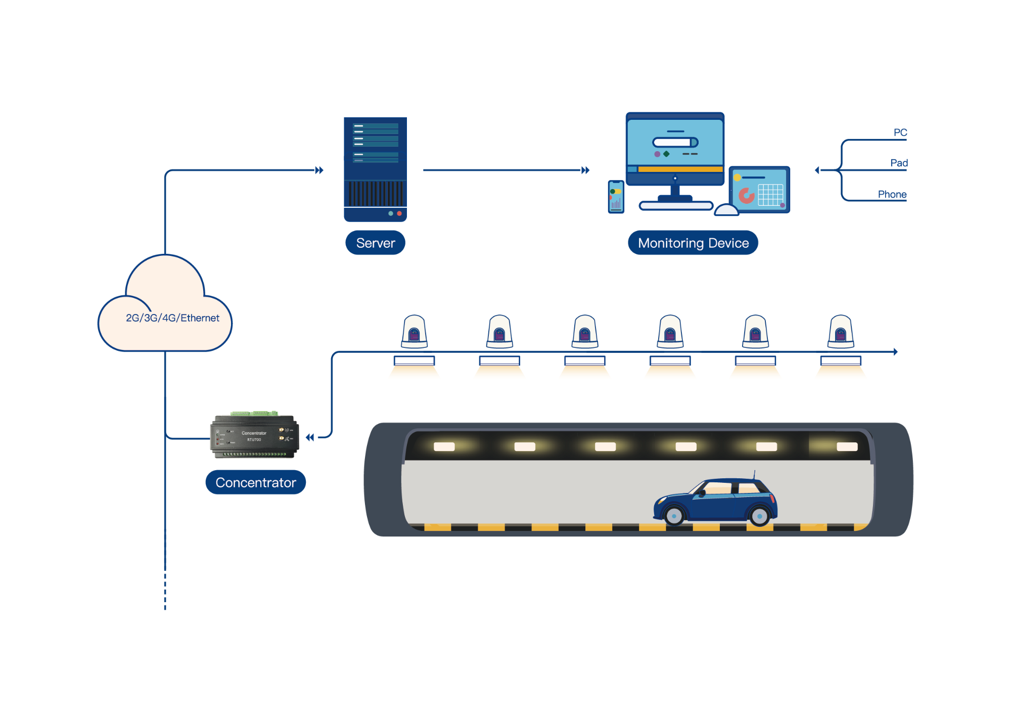 - A signal controller can support 50~80 lamp controllers, up to 5000 lamp controllers can be managed by a concentrator.